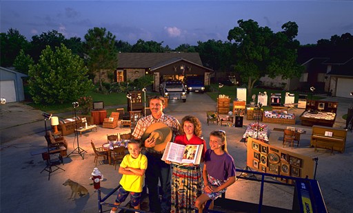 Op de volgende foto zijn de bezittingen van een Duitse familie afgebeeld; wat een doorsnee zou kunnen zijn van wat een gemiddelde westerling heeft: zoals meubilair, familieportretten en, wat blijkbaar hun trots is: een geïllustreerde bijbel.