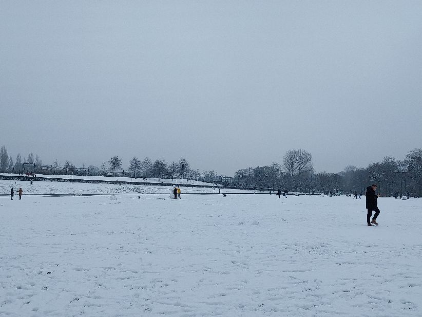Het nieuwe jaar is in zwart-wit begonnen dacht ik toen ik de witte belijning van de sneeuw zag op de donkere boomtakken in het park.