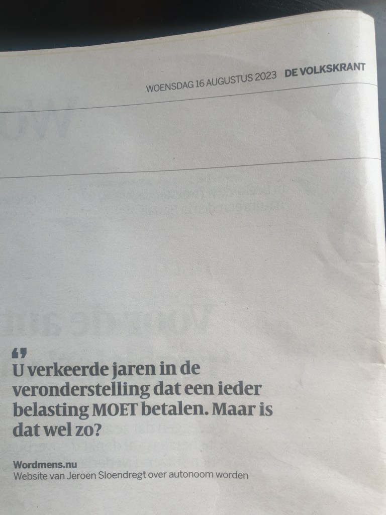 Mijn vader had een dwingende hand van opvoeden. Wat overigens niets bijzonders was in de jaren vijftig en zestig. De opvoeding had destijds andere doelen dan tegenwoordig. Maar zijn kritische aanwezigheid in mijn jonge leven heeft tot gevolg gehad dat ik elke deur achter me sluit, de kraan niet voor niets laat lopen, mijn voeten recht vooruit plaats, kopjes doorgaans niet op de rand van het tafelblad plaats, en zeker nooit in de weg zal staan bij in- uit- of doorgangen. Ongetwijfeld nuttige gewoonten, ook in het sociale verkeer. Minder prettig is, dat ik, behalve deze goede gewoonten, ook de dwingende hand van opvoeden van mijn vader heb overgenomen. Ik heb geen kinderen, maar wel medemensen. En, net zoals ik mij verschrikkelijk aan mijn vader ergerde, erger ik me wild aan mezelf als ik weer eens op straat iemand naroep: hand uitsteken! Of: rechts rijden! Op je eigen baan blijven! Is dit 30 km per uur? U staat hier de ingang te blokkeren. Dit is een stiltecoupé. Kunt u misschien iets zachter telefoneren? Wilt u op de stoep gaan lopen!